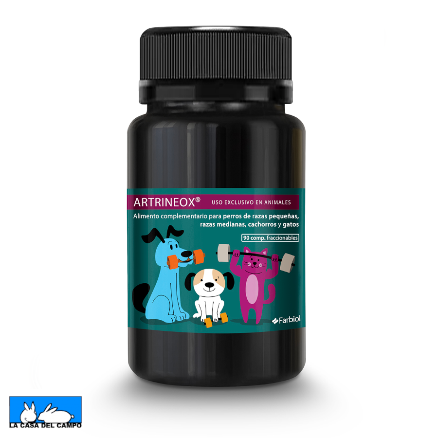 Dos presentaciones de 90 comprimidos, una recomendada para perros grandes y gigantes y otra para perros medianos, pequeños, y gatos.