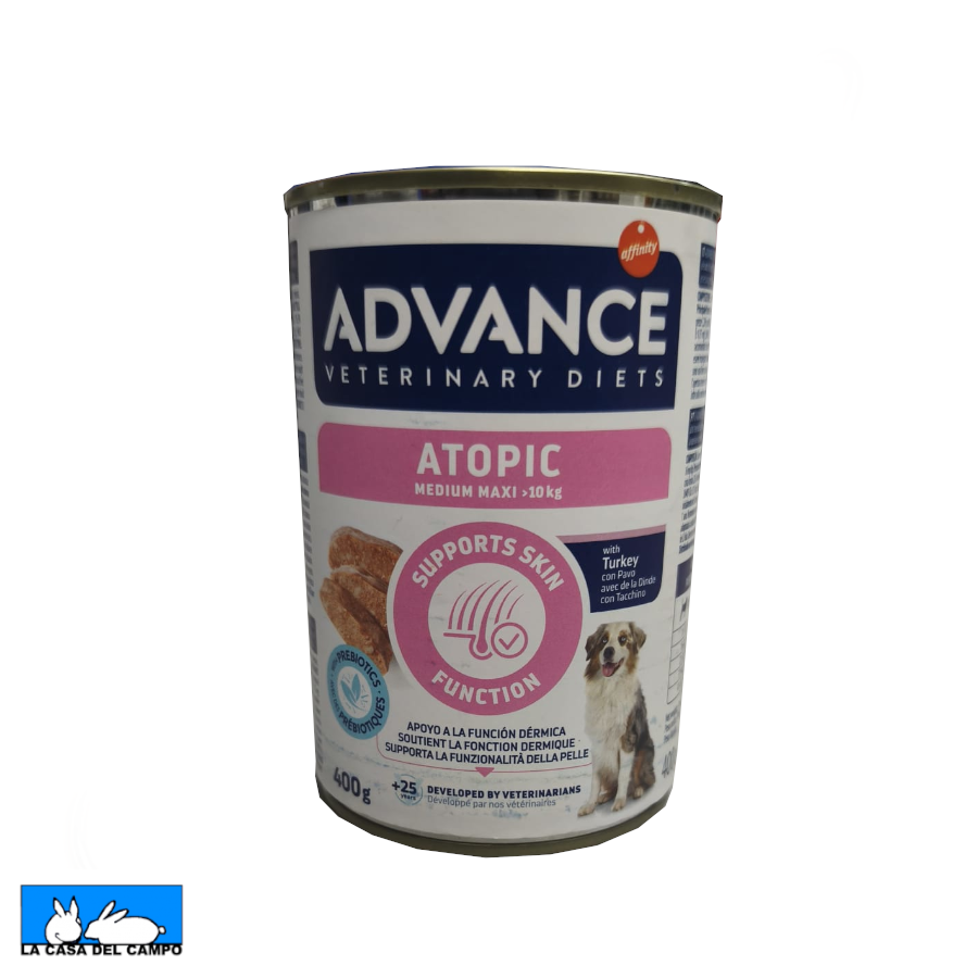Advance Atopic está indicada tanto para alergias cutáneas como alimentarias, y puede utilizarse sola o combinada con pienso seco Atopic para un cuidado completo.