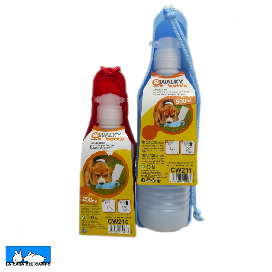 Dispensador de agua portátil para saciar la sed de nuestros perros durante nuestros viajes.