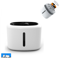 Su funcionamiento es ultra silencioso, ideal para hogares tranquilos, y dispone de un sensor de nivel que detiene automáticamente la bomba si el nivel de agua es bajo, protegiendo el dispositivo. Un sistema de aviso mediante luz LED informa del estado del bebedero: azul cuando funciona correctamente y rojo intermitente cuando necesita ser rellenado.