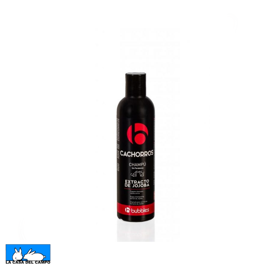 El champú cachorros Bubbles, gracias al extracto de Jojoba y sus propiedades de lubricación y facilidad de absorción, suavizan la piel de nuestra mascota desde el interior, reduciendo la perdida de agua y facilitando el proceso de regeneración celular. Además el aceite de JOJOBA es rico en vitamina E que ayuda a combatir los radicales libres, responsables del envejecimiento de nuestras mascotas.
