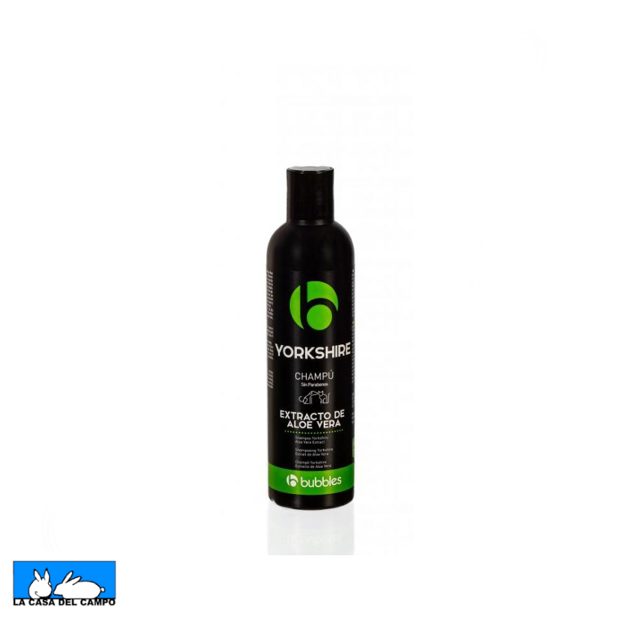 El Champú Yorkshire Bubbles está formulado a base de extracto de Aloe Vera, que es rico en aminoácidos, minerales, vitaminas y enzimas que estimulan la reproducción celular reparando y fortaleciendo el pelo de nuestra mascota. Además, su alto contenido en agua, ayuda a hidratar su piel y aporta un brillo, suavidad y elasticidad a su pelo de una forma natural.