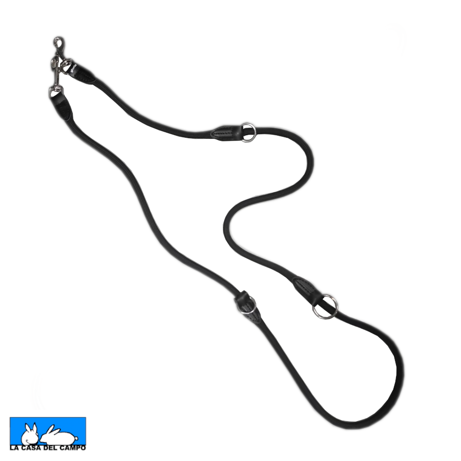 Correa de nylon de largo especial con tres posiciones diferentes. Puede utilizarse en dos perros a la vez.