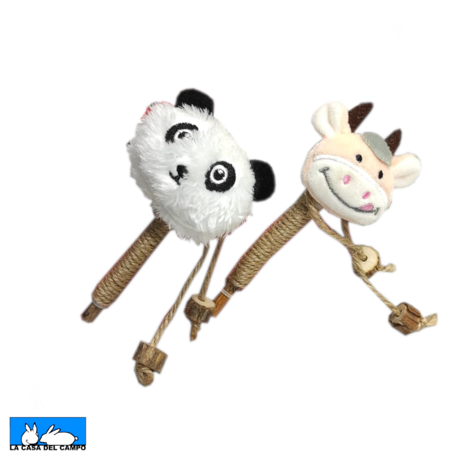Juguete que incluye matatabi, planta con efectos tonificantes, que incita a nuestros compañeros felinos a morder y jugar, al mismo tiempo que favorecen su relajación. Disponible en dos modelos (oso panda o vaca).