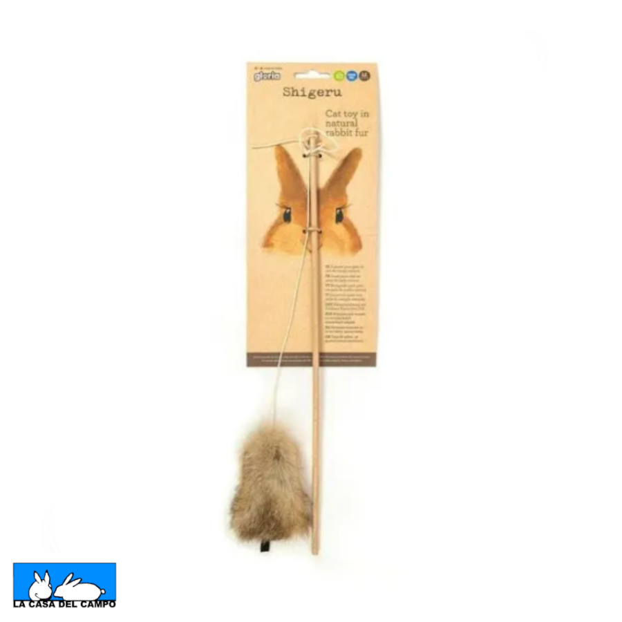 Juguete para gatos fabricado a partir de piel de conejo natural, siendo ideal para despertar los los instintos naturales de caza de nuestros amigos felinos, manteniéndolos activos y entretenidos. La gran mayoría de gatos tienen predilección por la piel natural, haciendo que podamos emplear ese juguete de diversas maneras: esconderlo por la casa, lanzar y recuperar, jugar con ellos agarrando de la caña, etc.