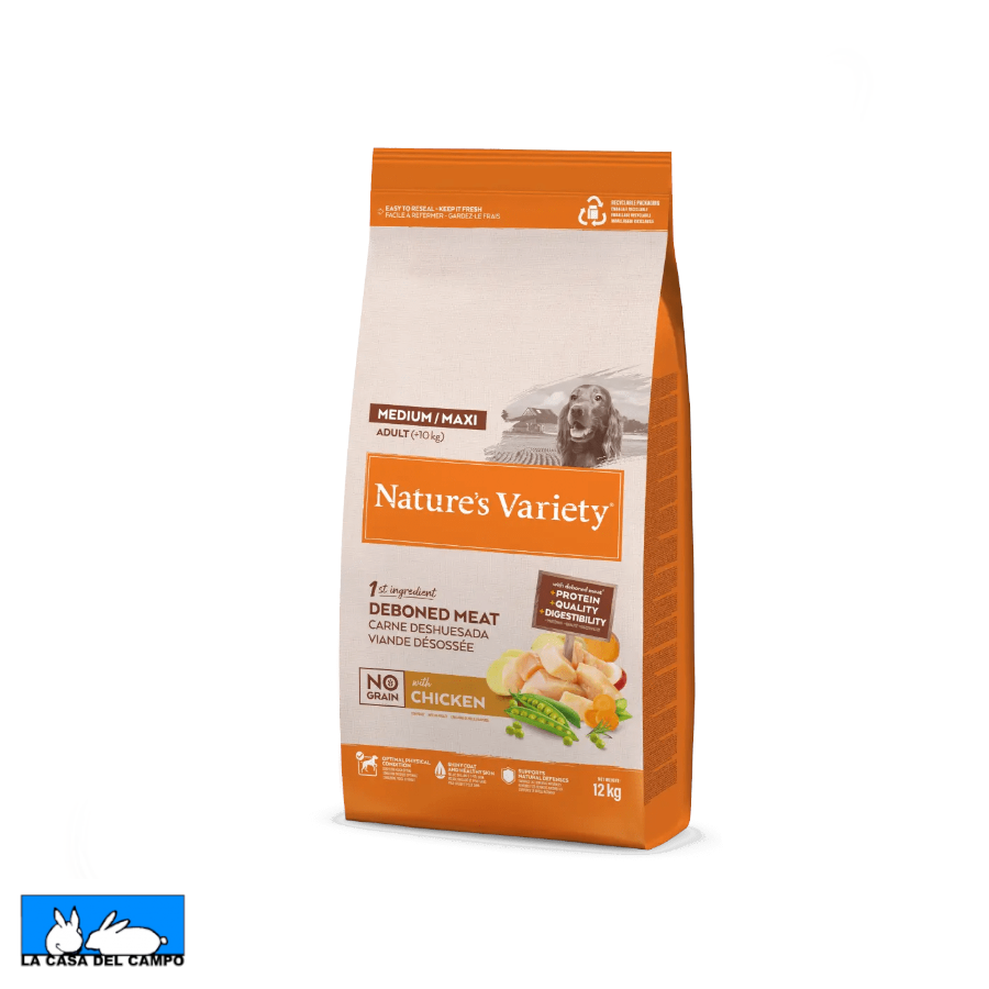 Alimento seco completo y equilibrado, formulado para cubrir las necesidades nutricionales de los perros adultos de razas medianas y grandes. Su ingrediente principal es el pollo deshuesado, una fuente de proteína animal de alta calidad que favorece el mantenimiento de la masa muscular y proporciona un sabor natural muy apetecible.