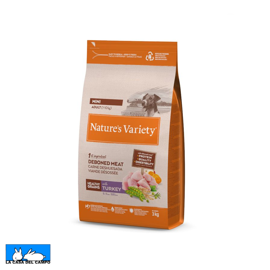 Alimento seco completo y equilibrado, diseñado específicamente para perros adultos de razas pequeñas. Su fórmula se basa en pavo deshuesado como ingrediente principal, una fuente de proteína animal magra y de alta calidad que ayuda a mantener la masa muscular. Incluye también cereales integrales saludables, como avena y arroz integral, que aportan energía sostenida y favorecen una digestión óptima.