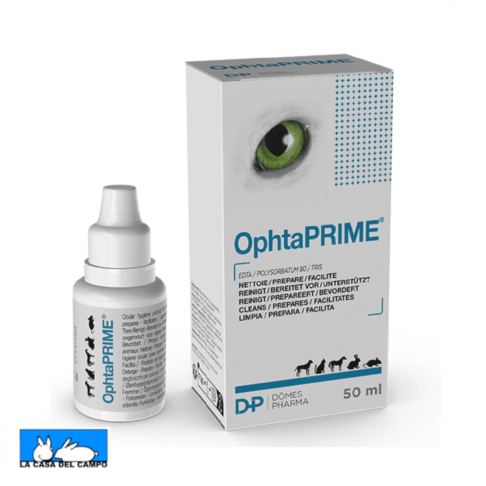 Antes de usar OphtaPRIME, lávese bien las manos y evite el contacto de la punta del frasco con el ojo o el párpado durante la aplicación. Aplique el producto 5 minutos antes de aplicar un tratamiento oftálmico. Si no hay legaña, aplicar de 1 a 2 gotas en el ojo afectado. Si hay legaña (ojo sucio), aplicar un pequeño chorro del producto en el ojo. Limpiar con una gasa limpia las impurezas que haya y el exceso de producto. Es posible que el veterinario desee modificar las instrucciones de uso anteriores. Siga las recomendaciones de su veterinario.