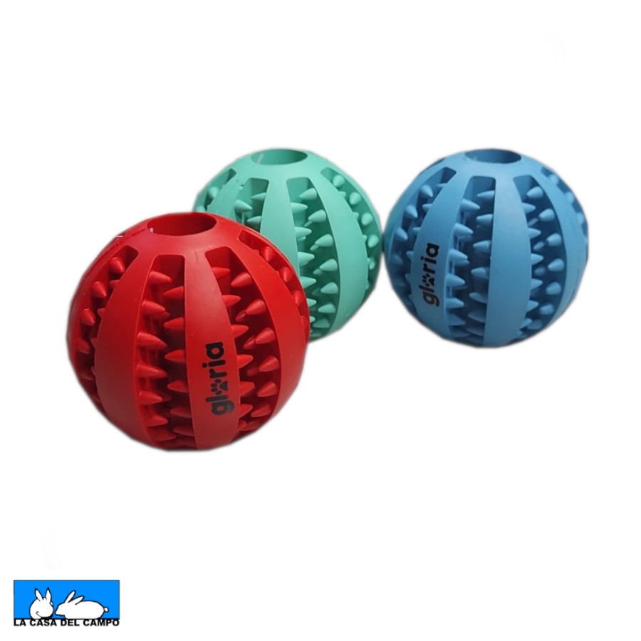 Pelota de 7 cm de caucho de gran flexibilidad adecuada para la mayoría de las razas. Diseñada para ayudar a limpiar eficazmente los dientes de tu perro y a reducir el sarro.