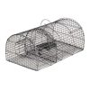 Trampa para ratas y ratones fabricada en malla de alambre, permitiendo a los ratones la visión del cebo en su interior. Sistema de trampa de fácil manejo mediante una palanca en el extremo del interior con enganche a la puerta, el roedor al activar la trampa queda atrapado en su interior.
